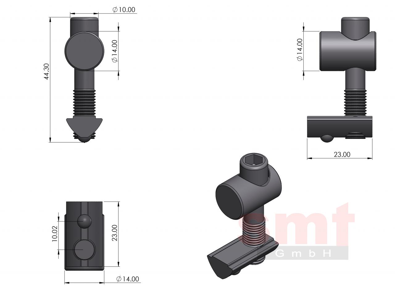 Bolzenverbindersatz 8 20 rostfreiHinweis Der Bolzenverbindersatz 20 Nut 8 rostfrei ist für Profile der Baureihe 8 im Raster 40 bestimmt und dient Konstruktionen mit hoher Belastung. Um den Bolzen einsetzen zu können, muss zuerst im Abstand von 20mm eine Bohrung D14/20 im ersten Profilabschnitt eingebracht werden. Anschliessend wird der Bolzen mittels Schraube im Nutenstein des 2 Profilabschnittes im Winkel von 90° befestigt. Bolzenverbinder aus Stahl sind eine Alternative zum S208UVS, da sie wesentlich höhere Lasten aufnehmen können Technische Daten Werkstoff: ST rostfrei Gewicht: 0,038 Kg Artikel Bezeichnung: Bolzenverbindersatz 8 20 rostfrei Artikelnummer: S208BVS20R Kompatibilität: I-Typ Download Datenblatt BarcodePreise Bolzenverbindersatz 8 20 rostfrei Bitte wählen: