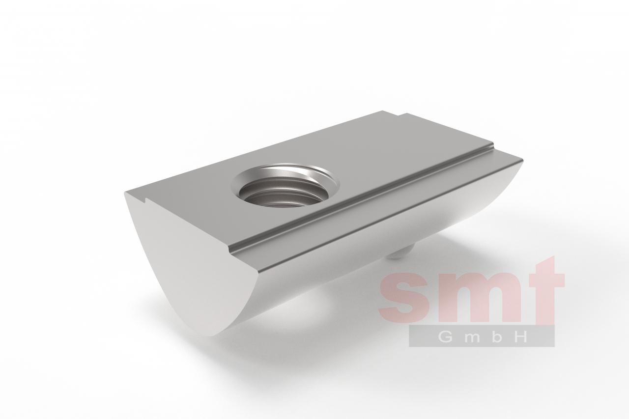 Nutenstein 12 M10 mit StegHinweis Ein Nutenstein kann individuell für zahlreiche Befestigungsmöglichkeiten verwendet werden. Dabei wird der Nutenstein stirnseitig in die Nut eingeschoben oder an beliebiger Stelle in die Nut eingeschwenkt. Das federgelagerte Kugeldruckstück, welches auf den Nutgrund des Profiles drückt, arretiert den Nutenstein und sorgt für eine schnelle Montage von Anbauteilen jeglicher Art. Zur Befestigung steht eine reichhaltige Auswahl an Schrauben unterschiedlicher Kopfformen in Edelstahl und Stahl verzinkt zur Verfügung. Nutensteine der Baureihe 12 sind verbaubar mit allen Profilen der Baureihe 12 Technische Daten Werkstoff: ST verzinkt Gewicht: 0,034 Kg Artikel Bezeichnung: Nutenstein 12 M10 mit Steg Artikelnummer: S212NSMS10 Kompatibilität: I-Typ Download Datenblatt BarcodePreise Nutenstein 12 M10 mit Steg Bitte wählen: